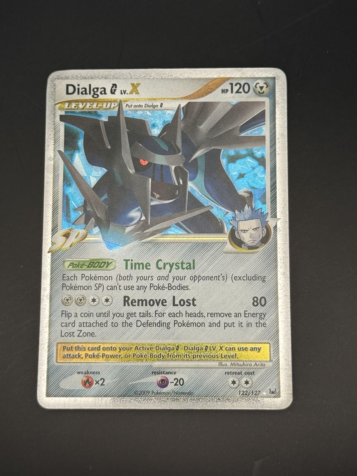 Hey there, Pokémon trainer! You’ve stumbled upon a gem. .. Dialga G LV. X from Platinum. Whether you’re battling or collecting, this card is a must-have. It’s the perfect addition to your deck or collection! Card is in Near Mint or Better condition. Minor scuffs and whitening of edges on back of card. Extra photos are available upon request. We pack each card with love in a top loader, team bag, and a pull tab. We take pride in quick shipments and you have your choice of shipping via eBay standard envelope (for cards less than $20) or USPS Ground Advantage. We’re not just sellers. we’re fellow Pokémon enthusiasts. Got questions? Just ask!